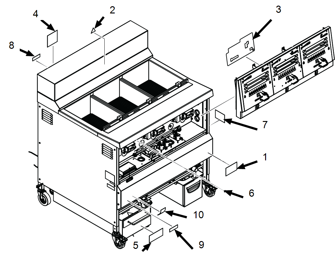 Installation warning label -Located on back of fryer |